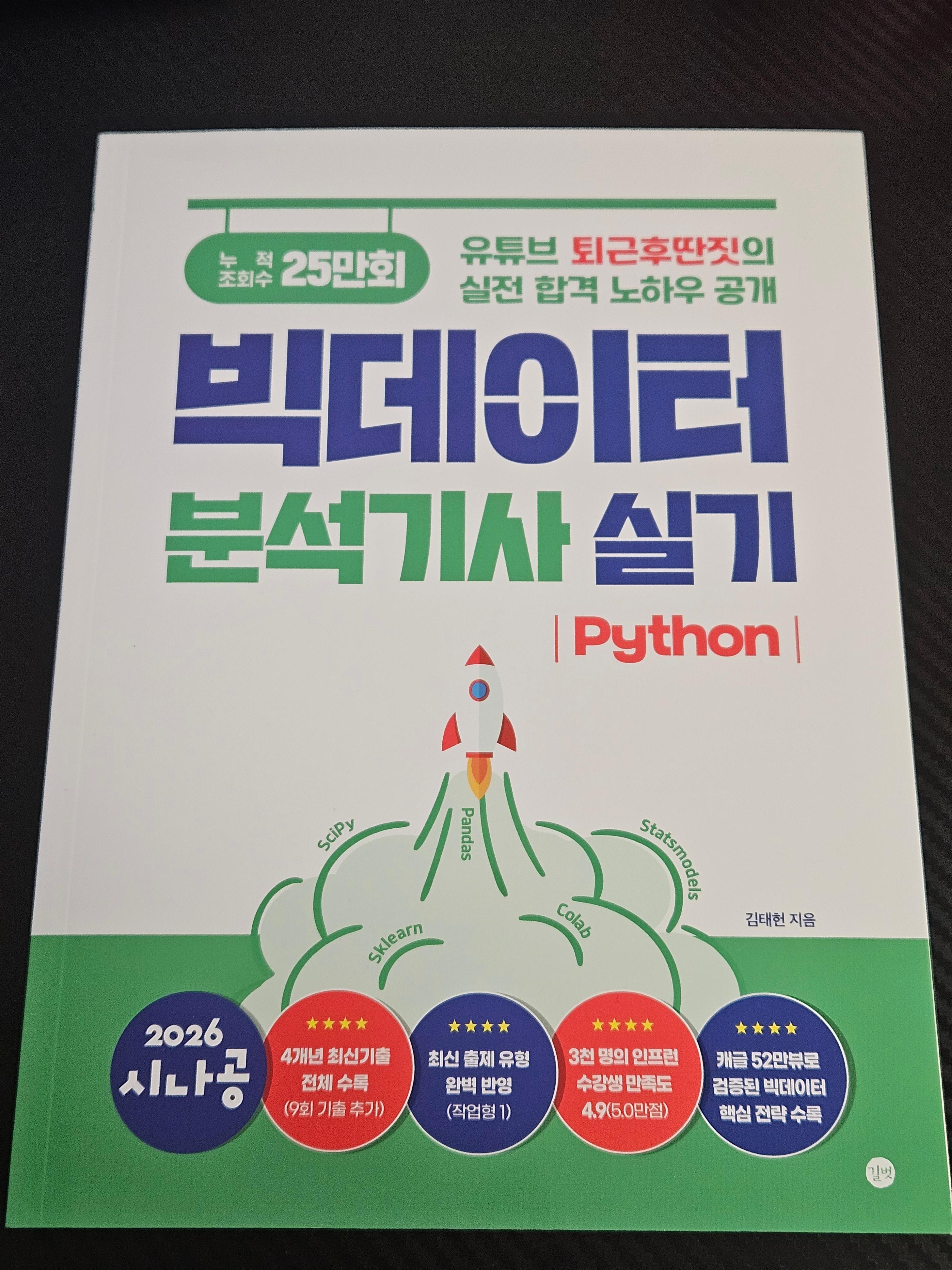 안녕하세요! 이번 포스팅에서는 빅데이터분석기사 실기 시험을 준비하며 활용 중인 시나공 Python 교재의 첫인상과 앞으로의 학습 계획을 공유해보려 합니다.