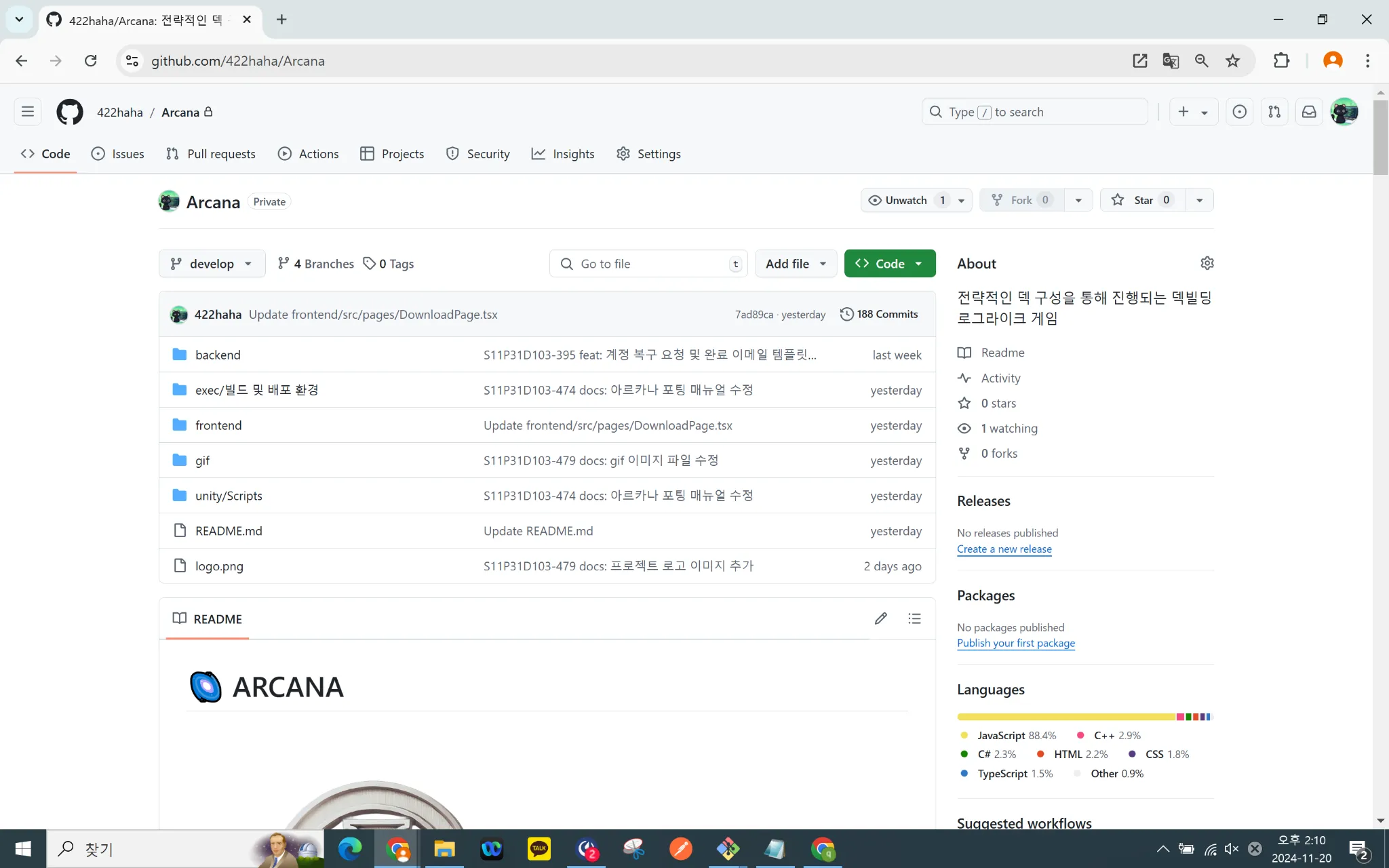 - 422haha 사용자 계정의 Arcana 리포지토리를 엽니다.